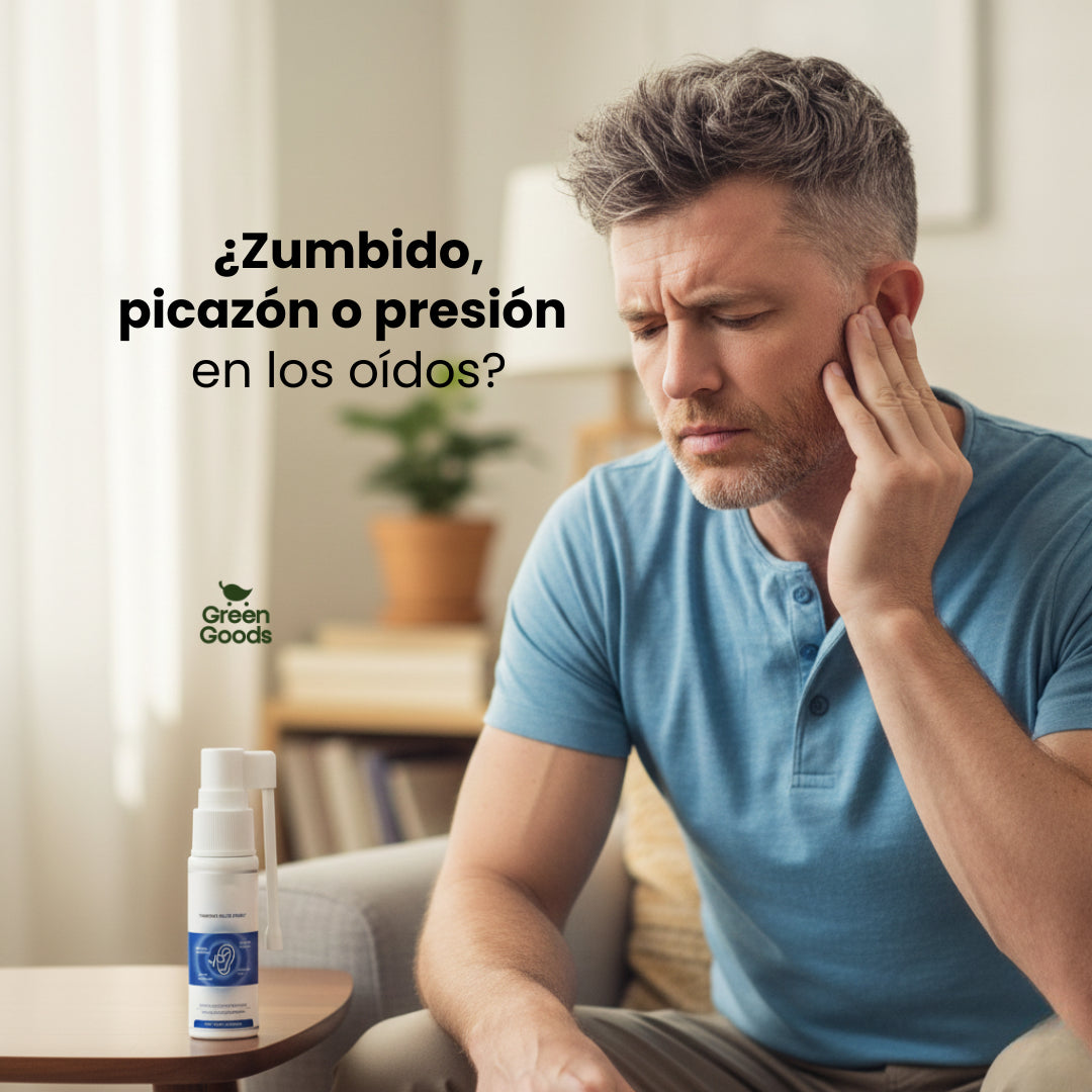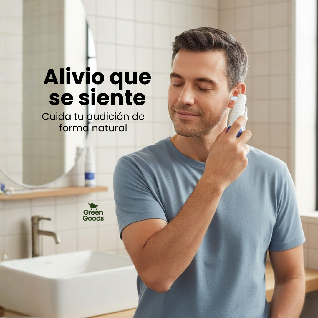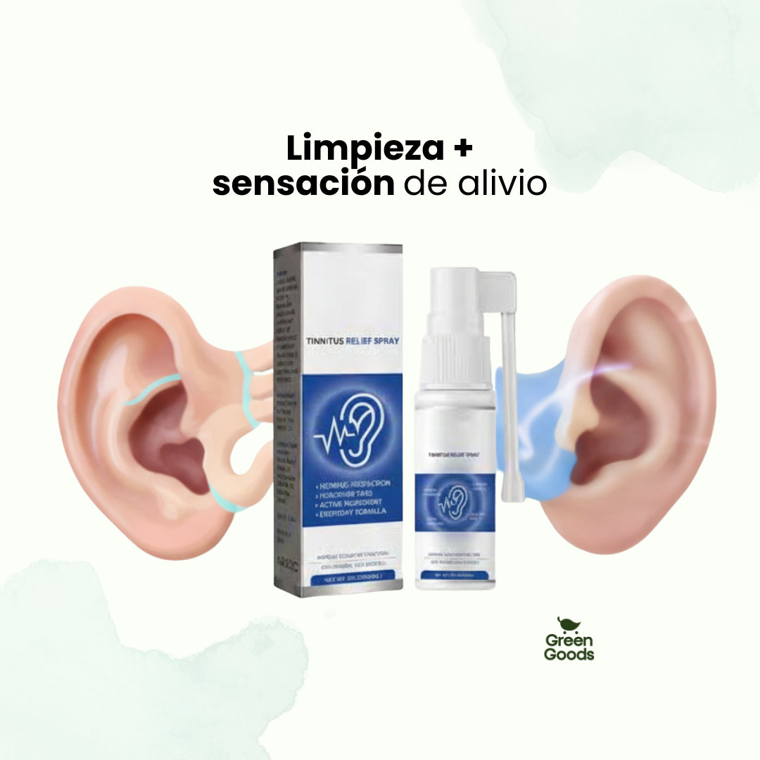 TinniDrop Spray ayuda a limpiar el canal auditivo y a aliviar molestias como zumbidos, picazón, inflamación y sensación de oído tapado, apoyando el bienestar auditivo de forma natural.